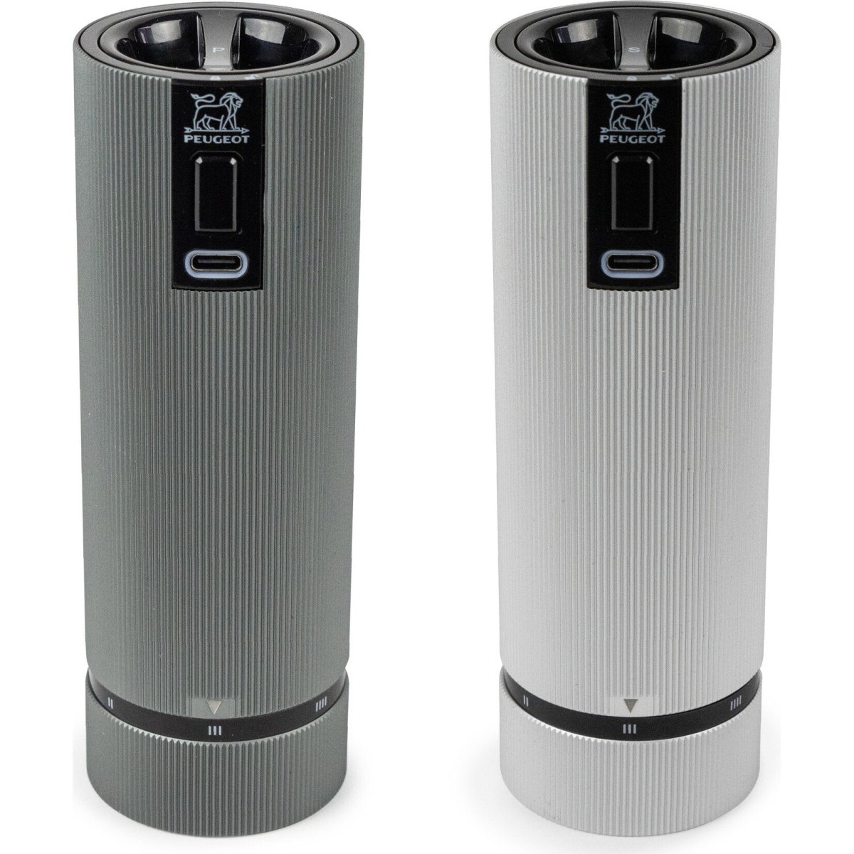 De Peugeot LINE U’SELECT elektrische peper- en zoutmolen set uit de Line serie is een stijlvolle en functionele toevoeging aan elke keuken. Deze hoogwaardige molens, gemaakt van geribbeld aluminium, combineren een elegant design met gebruiksgemak. De zoutmolen heeft een aluminiumkleur, terwijl de pepermolen een donkerdere carbonkleur heeft. Hierdoor houd je ze gemakkelijk uit elkaar en gebruik je ze als perfecte smaakmakers voor elk gerecht. Dankzij de 6 instelbare maalstanden kies je eenvoudig de juiste maalgraad met de u’Select functie aan de onderzijde. De molens werken op een krachtige lithium-ionbatterij die snel oplaadt en lang meegaat.