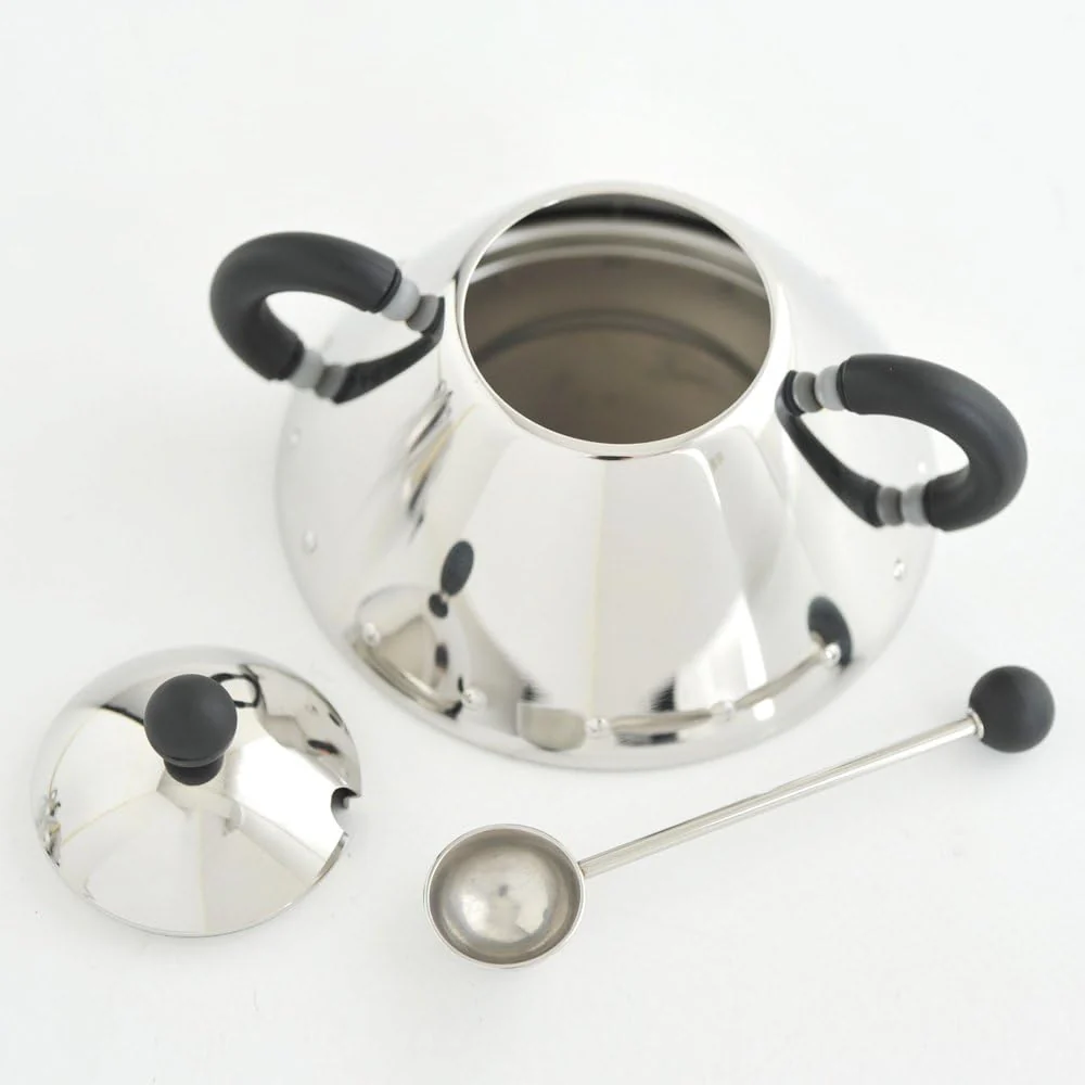 De unieke vormgeving van Michael Graves geeft de Alessi 9097 B suikerpot een iconische uitstraling. De combinatie van roestvrij staal en een minimalistisch zwart ontwerp maakt hem niet alleen functioneel, maar ook een stijlvolle toevoeging aan je keuken of koffietafel. Het bijgeleverde lepeltje met zwart bolletje maakt het geheel compleet.