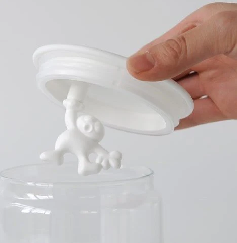 De klassieke keukenpot opnieuw geïnterpreteerd door ontwerper Mattia Di Rosa: in plaats van aan de buitenkant, is het design hier aan de binnenkant te vinden. Met een vleugje ironie heeft Di Rosa “Gianni” gecreëerd, het mannetje dat zich aan het deksel vastklampt. De hermetische pot is plots zo leuk dat je hem bijna niet meer wil vullen.
